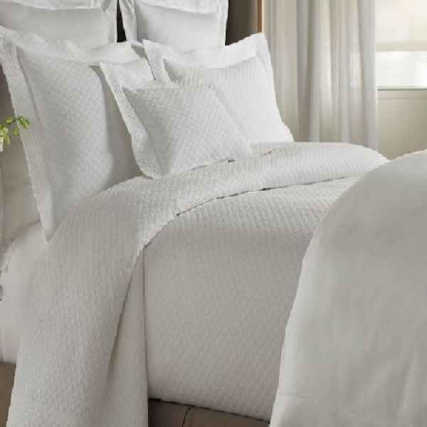 Alyssa, 100% Egyptian cotton matelasse coverlet with a diamond design and 8 rows of decorative hem stitching.