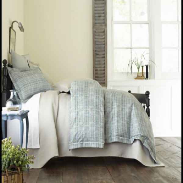 Finely woven cotton yarns in blue, gold, and platinum come together in grid-like striations to create our Biagio duvet cover and shams . Layers beautifully with our Mandalay linen cuff sheet and pillow cases in navy, or our Angelina navy coverlet.