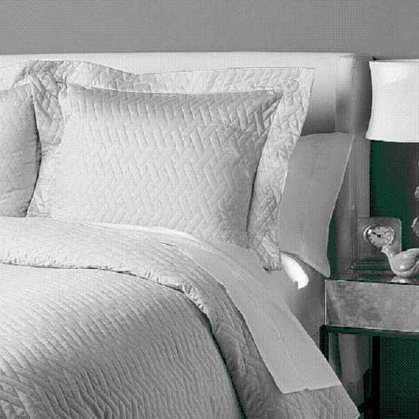 Our Raso quilted coverlets are made of 100% long staple cotton. This sumptuous bedding is constructed with 300 Thread Count Single ply sateen for a soft luxurious texture and then quilted with an all over geometric pattern.