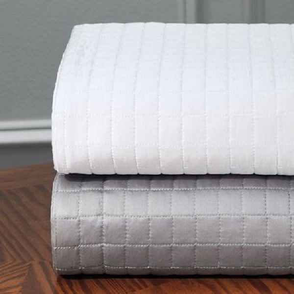 The Urban Quilted Coverlets & Shams feature a contemporary box quilted pattern. Coverlets offered in White and Quarry Grey in all bedding sizes. Shams available in standard and king shams that feature 2” flange. Euro shams (26”x26”) and decorative lumbar pillows (12”x32”) feature a solid piping edge treatment. Bedskirts are 3 piece panels with a 18″ drop.