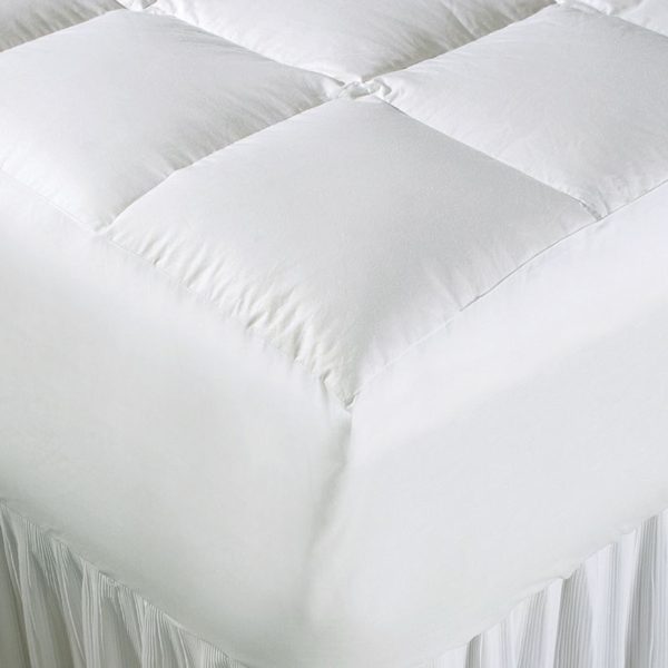European White Down – A unique down mattress pad filled with European white goose down with an 18” attached skirt. Luxurious 100% cotton cover and sewn through 8” box design. The skirt is elasticized all the way around for a better fit.