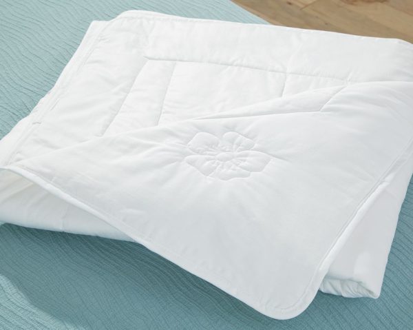 This comforter is a great option for those with high body heat or who live in a warmer environment. This lightweight comforter provides excellent insulation for the colder months and offers cooling properties for the warmer seasons making it a great option for year-round use. The natural linen fiber is breathable, wicks away approximately three times as much moisture as cotton. The cover is 100% Cotton Sateen with an Aloe Vera Finish. Made in Austria.
