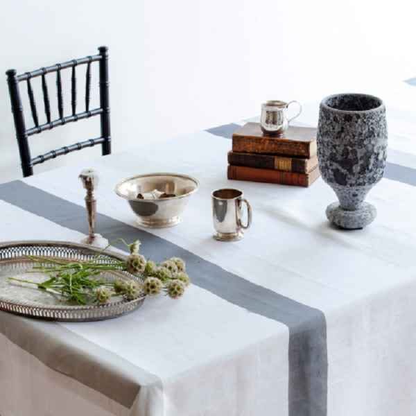 - – This linen table runner features stripes in shades of Grey, Blue, Pastel, or Multi-Colors plus ivory to give a fresh, minimalist, modern look