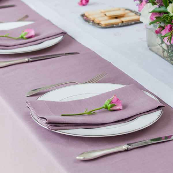 - – Luxurious solid colored Heather linen tablecloth – a beautiful shade of purple/lilac/pink evoking the beauty of the Scottish highlands