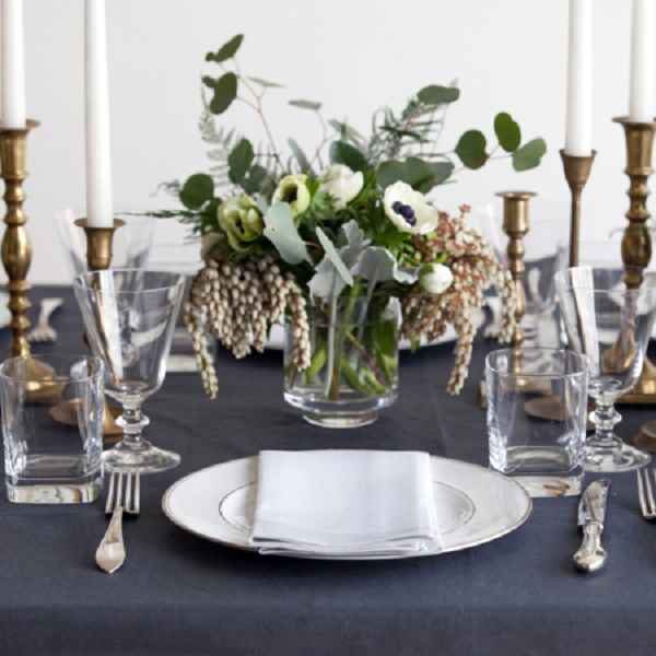– Luxurious Slate Charcoal Grey solid colored linen tablecloth Also in Silver Grey or Black