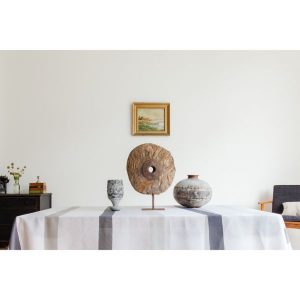 Huddleson-Italian Linen Printed Table Linens Cinta Grey Tablecloth Round