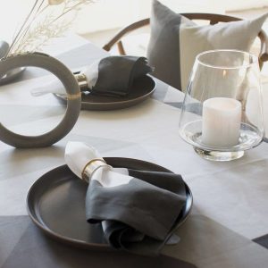 Huddleson-Italian Linen Printed Table Linens Cinta Grey Tablecloth Square