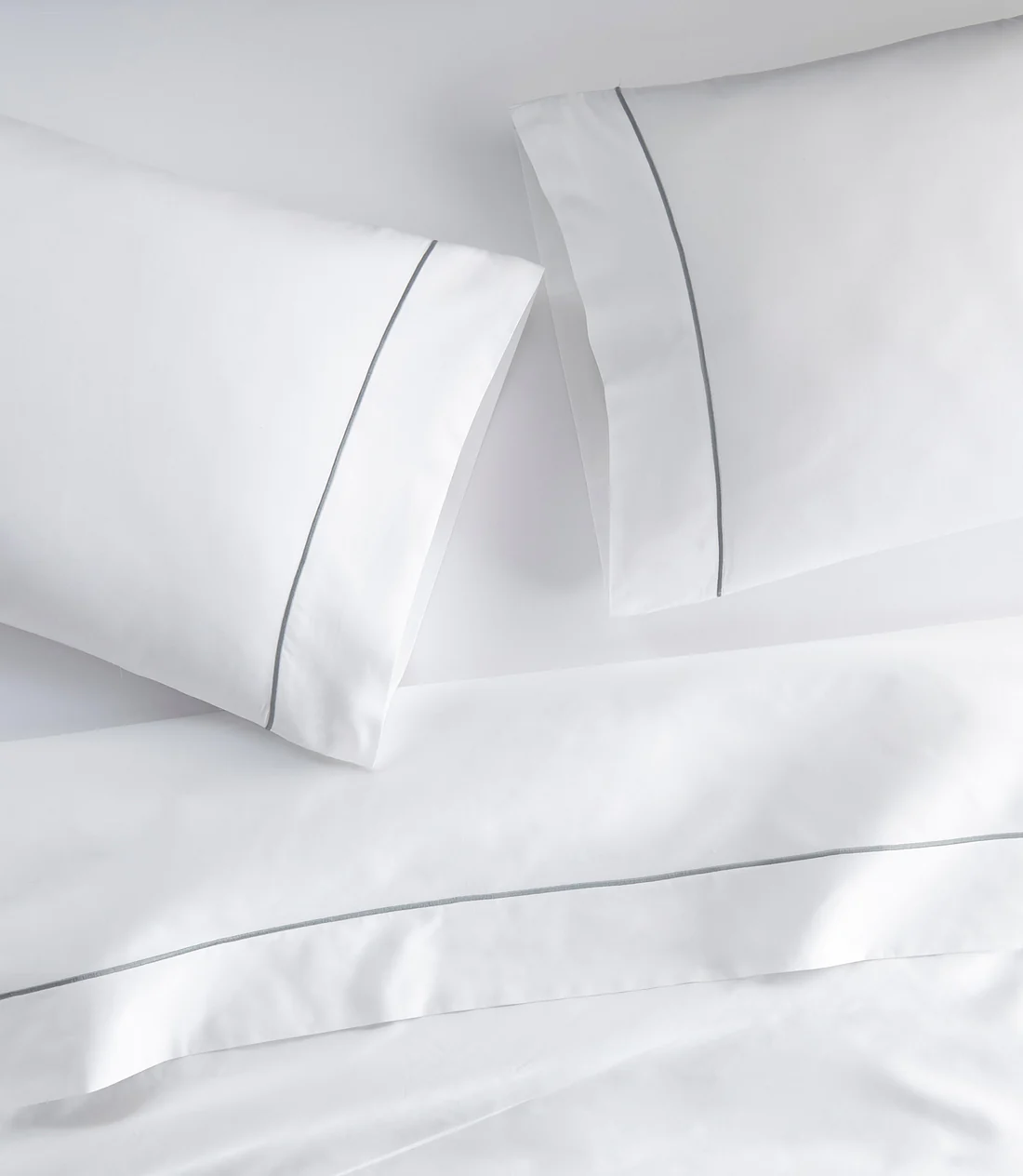The Boutique sheeting collection is a 200-thread-count, 100% combed long staple cotton percale, tested to exceed hospitality standards. A single row embroidered satin stitch on hems. Fitted sheet has a 17″ gusset. Fitted sheets are in white only. Coordinates with entire Peacock Alley signature collection