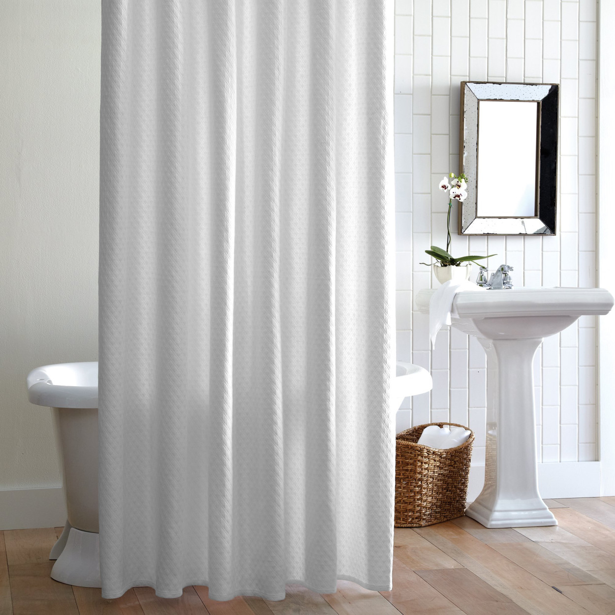 $180 Alyssa, 100% cotton matelassé shower curtain with a diamond design and a single decorative hem stitching.