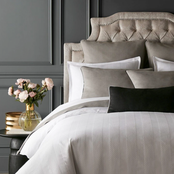 Channing offers a sophisticated take on the classic all white bed. With a subtle woven stripe that adds depth and texture to this duvet cover and works perfectly alone or paired with decorative accessories.