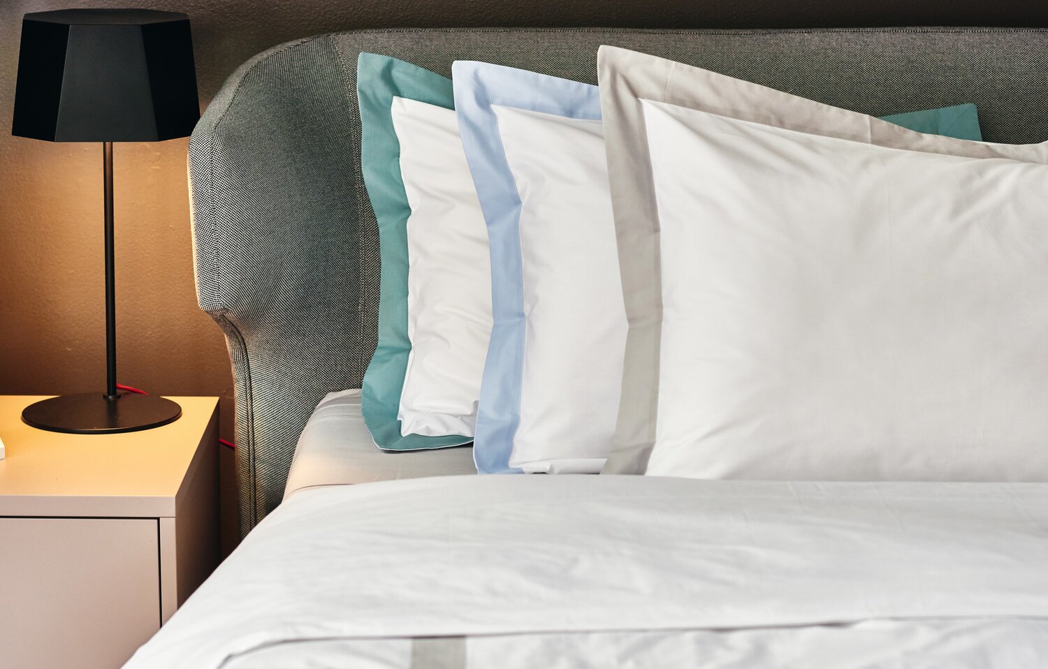 Uncomplicated yet elegant, Greenwich is a simple applied border on crisp percale for a modern look. Greenwich pairs beautifully with many of our bedding collections.
