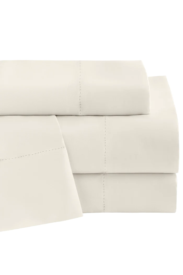 King Sheet Set: Flat Sheet (110×110″), Fitted Sheet (78x80x16″ pocket), Pillowcase Pair (21×40″)
