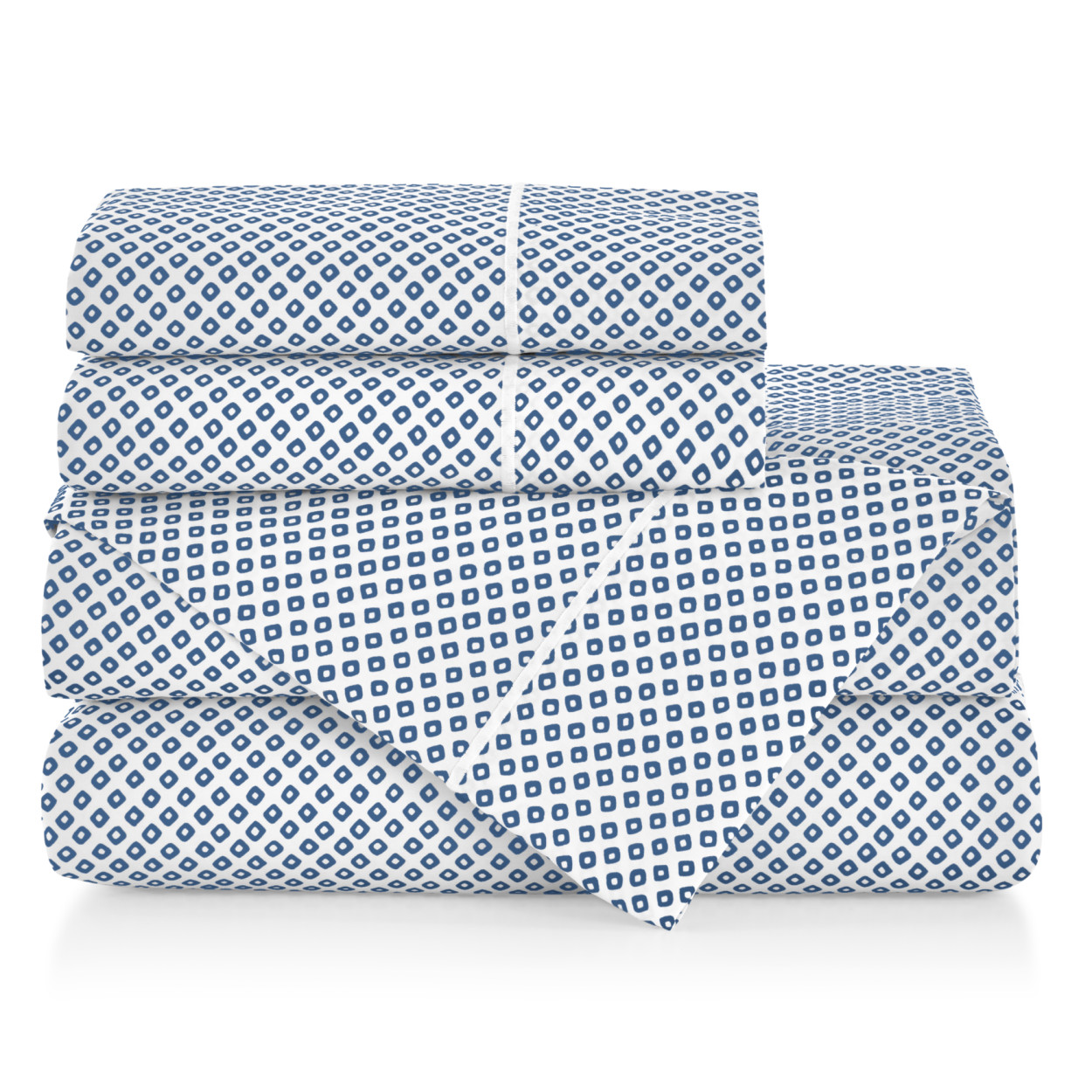 Add depth and color to your bedding ensemble with our geometric, dotted, diamond Emma pattern. Emma is masterfully printed on 300 thread count sateen fabric with a beautiful single row satin stitch on the hem.
