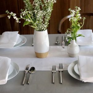 - – Blue and white is perhaps the most beloved color to decorate with and this blue and white linen tablecloth has become a contemporary classic.